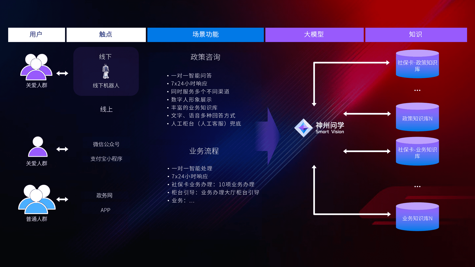 在服务大厅部署客服机器人,,在线上应用和小程序配置客服数字人,,,724小时为群众解答常规问题,,,客服机器人无法处理的,,转现场人工处理。。