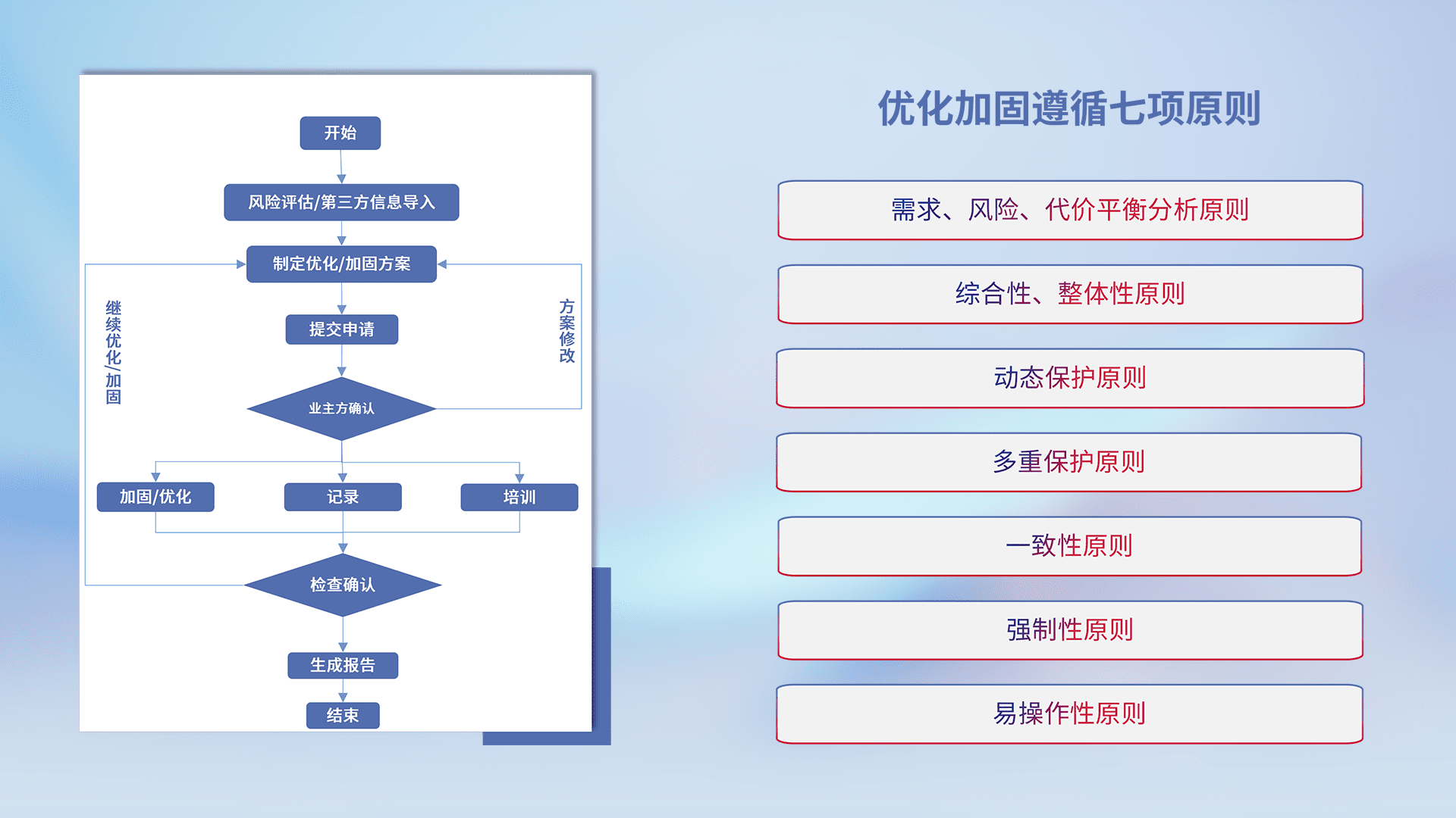 通过专业的法律咨询解读、、、、合规架构体现、、差异化解决方案、、、、测试实施支持等服务,,,,为客户量身打造等保合规体系。。。